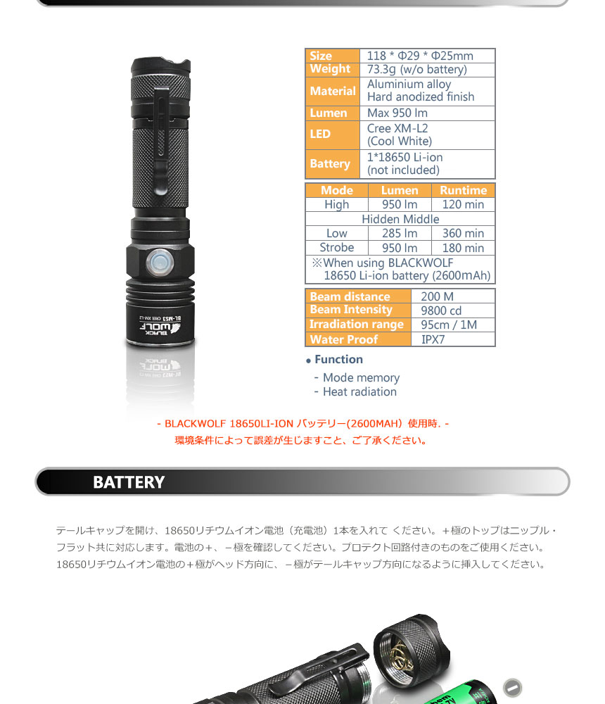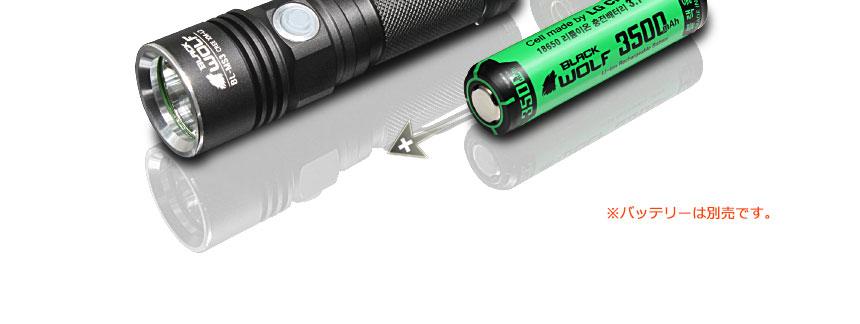 ※ BLACKWOLF 18650リチウムイオン電池2600mAh使用時