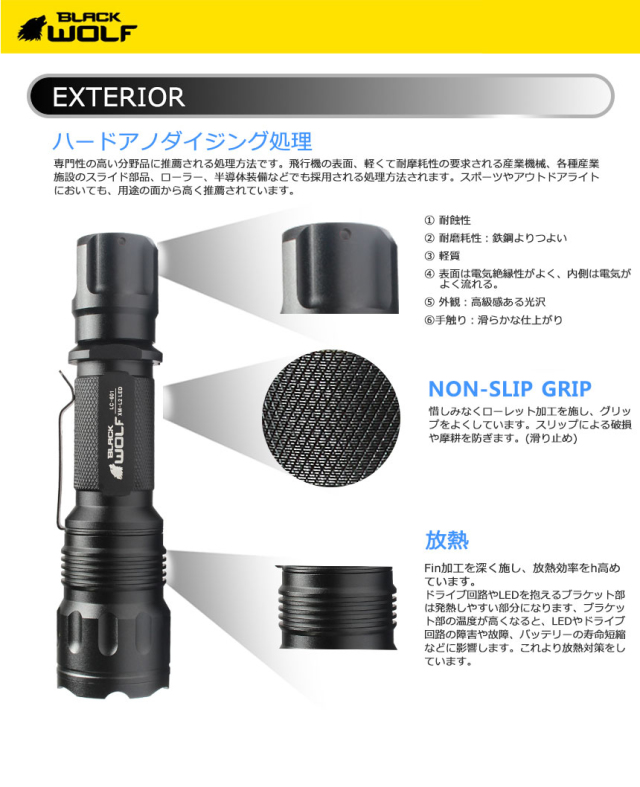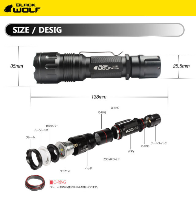 | 製品名: | 【BLACK WOLF】LC-601(XM-L2)850ルーメン |
