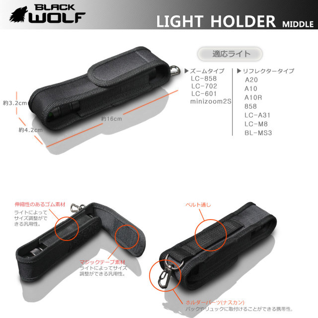 【対応ライトサイズ】BLACKWOLFライト「LC-C8」、「ST-90s」「WP-4L」「WP-4S』以外の