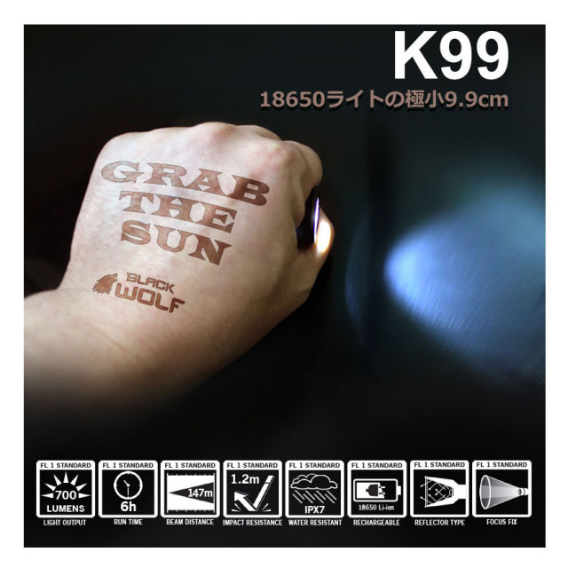 【ランタイム】 MAX6h (BLACKWOLF18650リチウムイオン電池2600mAh使用時)