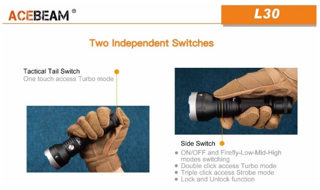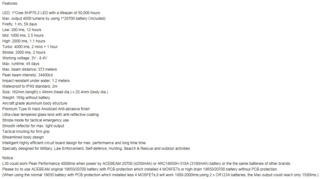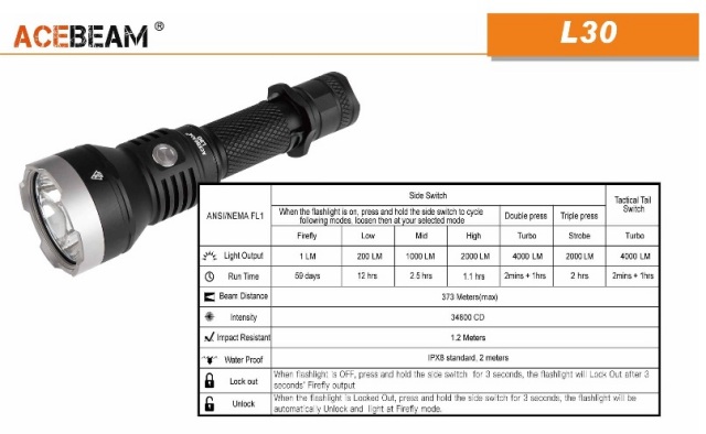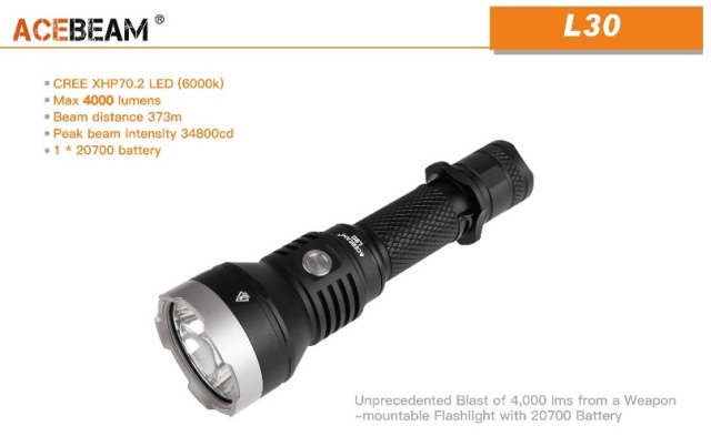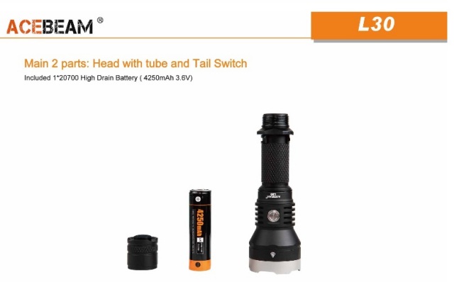 | 製品名: | 【ACEBEAM】 L30 2 Cree CREE XHP 70.2 Max4000ルーメン/照射距離373M★閃光ハンドライト |