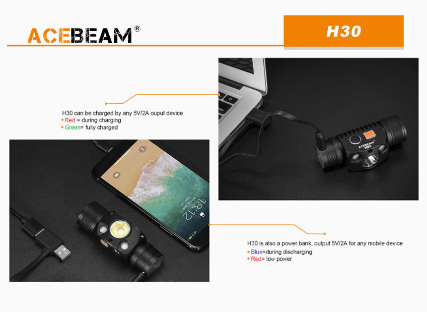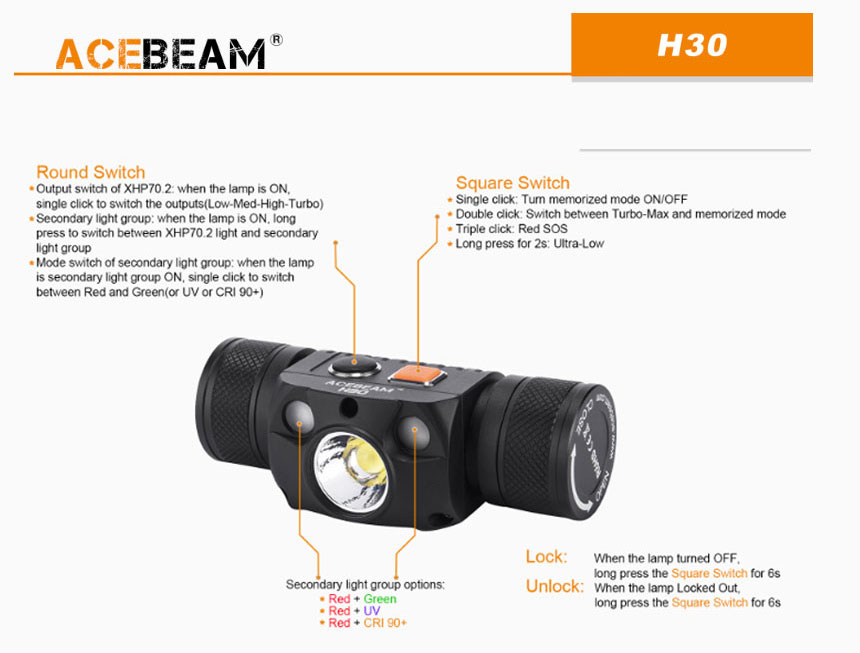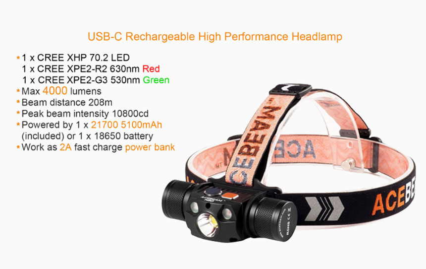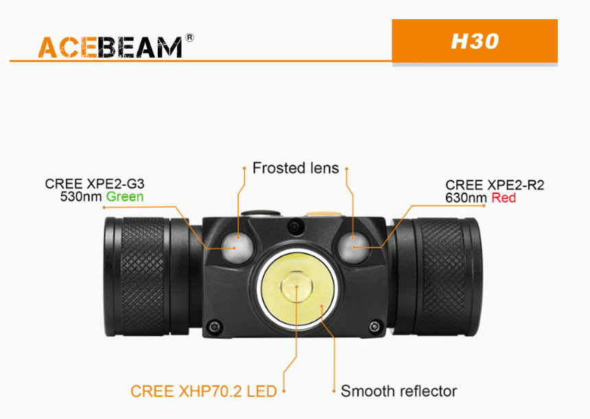 | 製品名: | 【ACEBEAM(エースビーム)】H30 /Cree(クリー)XLamp XHP70.2、レッドLED、ブルーLED搭載 3500ルーメン★閃光ヘッドライト |