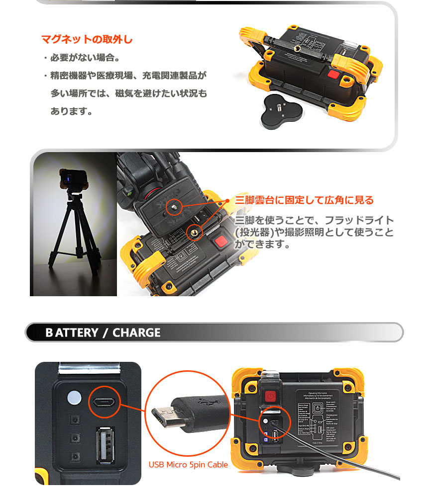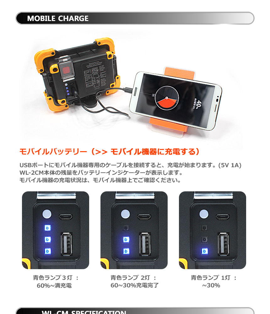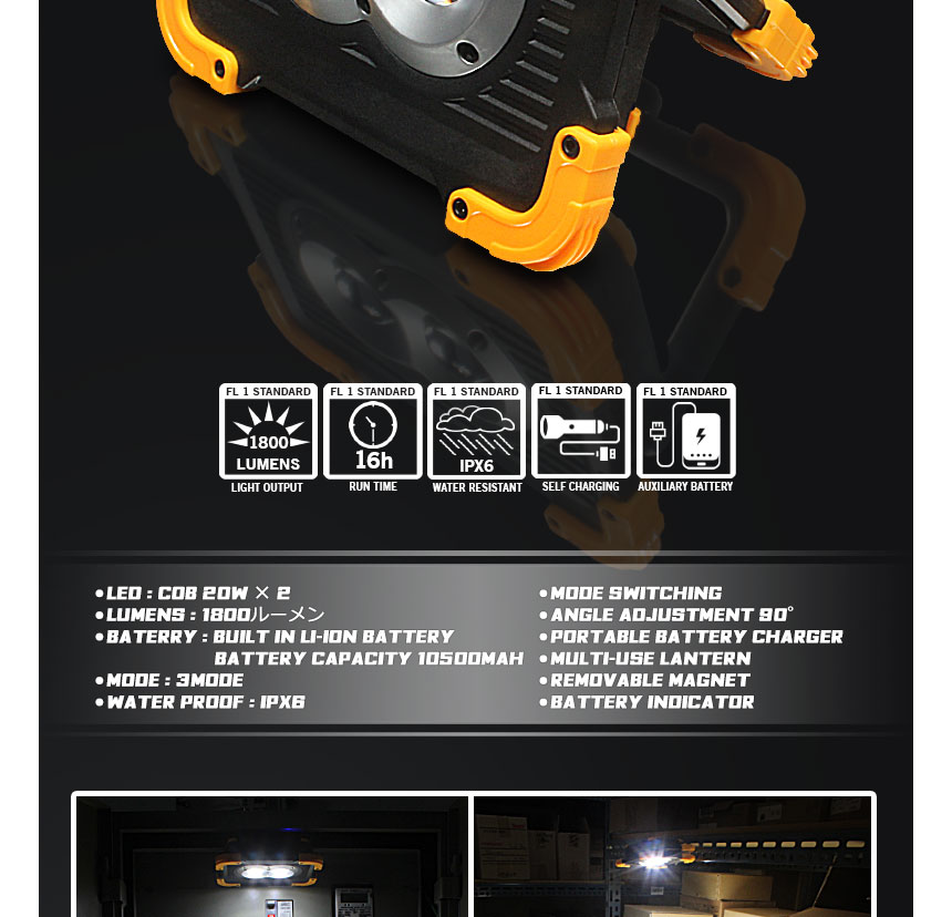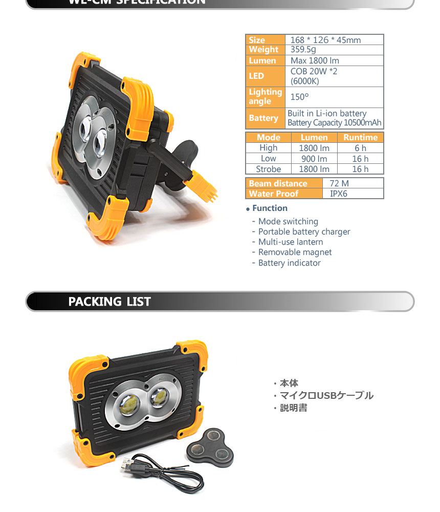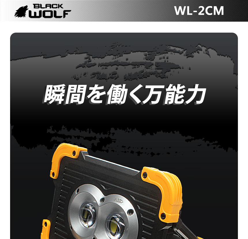 | 製品名: | 【BLACKWOLF(ブラックウルフ)】ワークライトWL-2CM LED(COB)20W/バッテリー内蔵(10500mAh)モバイルバッテリー機能付き |