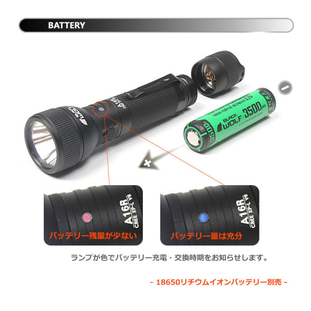 【ランタイム】 MAX 30h (BLACKWOLF18650リチウムイオン電池3500mAh使用時)