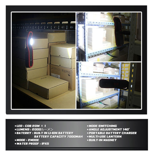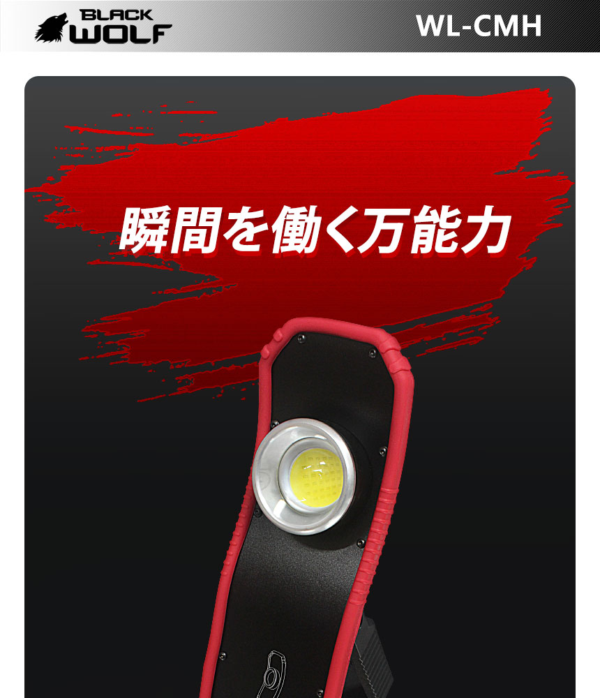 | 製品名: | 【BLACKWOLF(ブラックウルフ)】ワークライトWL-CMH 明るさ2000ルーメン COB(20W) バッテリー内蔵(7000mAh)2モード 多様な取付方法 |