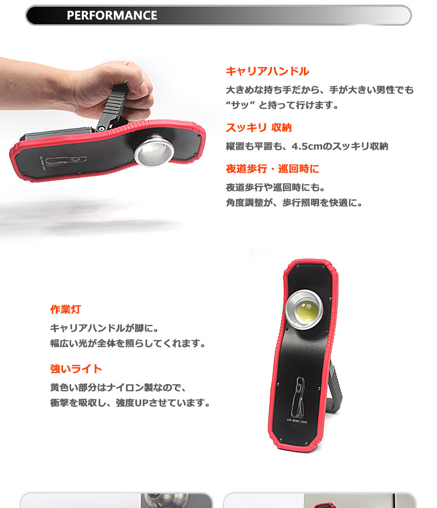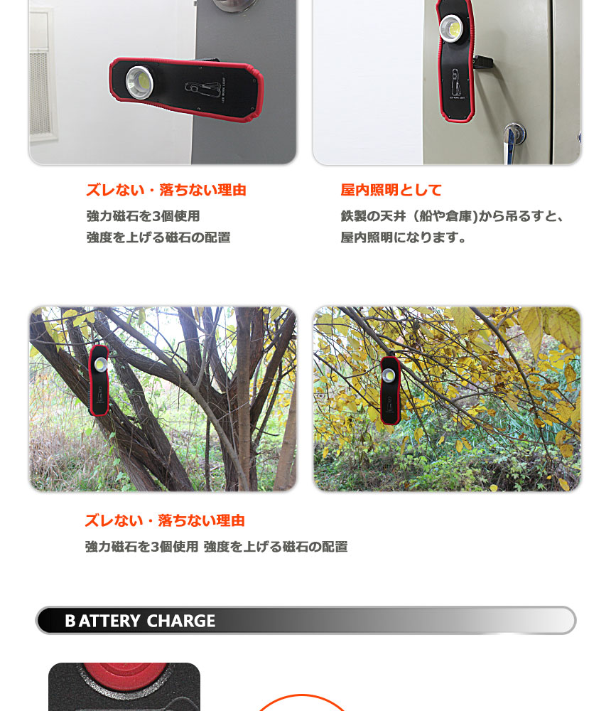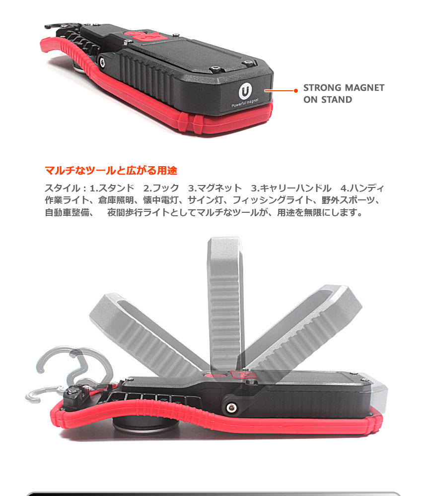 マルチな取付方法で無限な用途。大容量バッテリーで長いランタイム。ハンドキャリー・マグネット。作業灯、キャンプや野外活動での照明でも活躍します。