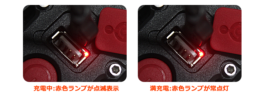 充電中:赤色ランプ点滅 充電完了:赤色ランプ点灯